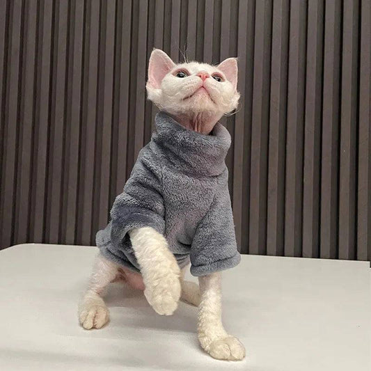Soft Gray Turtleneck Sweater Coat Hairless Cat Winter Cloth