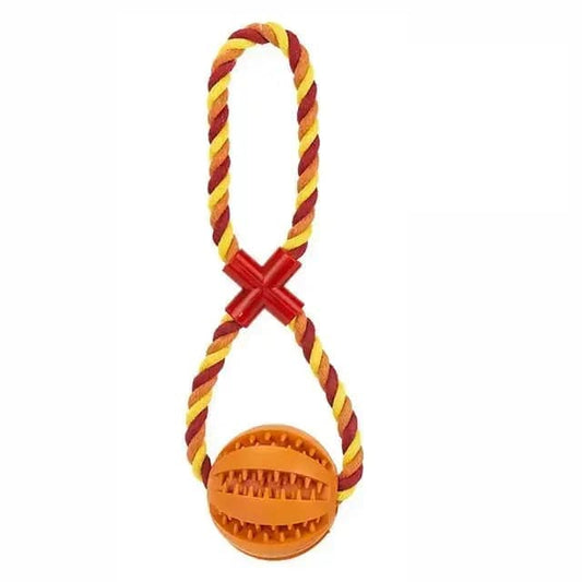 Orange Ball Burgundy & Yellow Hemp Rope Toys Treat Interactive Rubber Leaking Balls for Small Dogs Chewing Bite Resistant Pet Tooth Cleaning