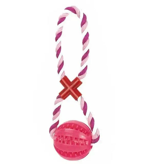 Pink Ball Fuchsia & White Hemp Rope Toys Treat Interactive Rubber Leaking Balls for Small Dogs Chewing Bite Resistant Pet Tooth Cleaning