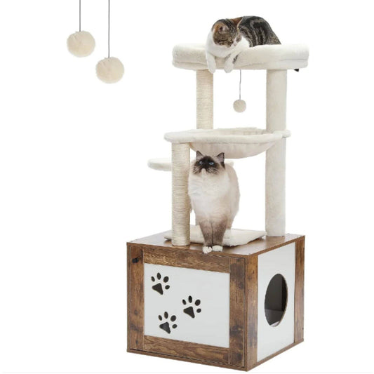 46.1" Brown Modern Cat Tower Wood Large Hammock Litter Box Enclosure