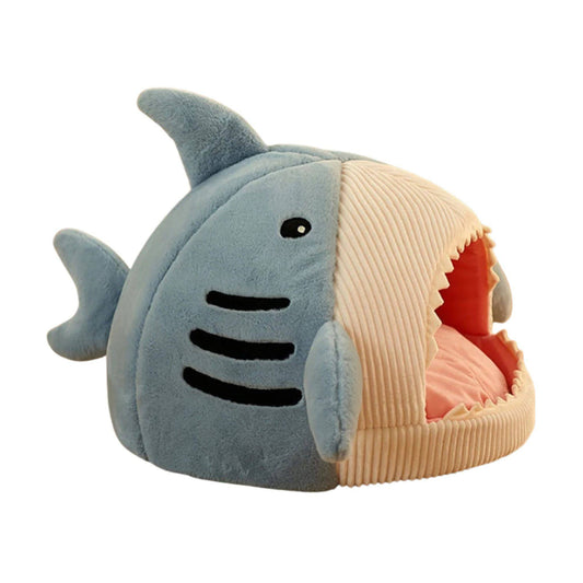 Blue Gray Cat Mat Shark-Shaped Kennel Kitten Bed Hideout House Semi-Closed Nest