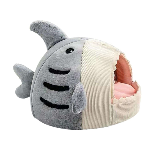 Light Gray Cat Mat Shark-Shaped Kennel Kitten Bed Hideout House Semi-Closed Nest