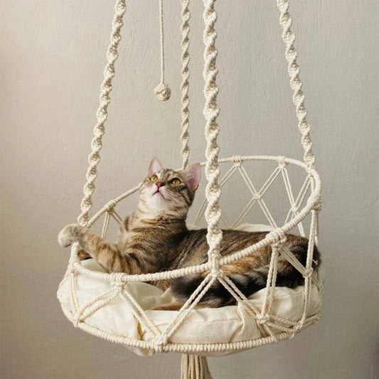 Pet Cat Hammock Swing Bed Handwoven Tapestry Cotton Macrame for Home Indoor Outdoor Wall Hanging