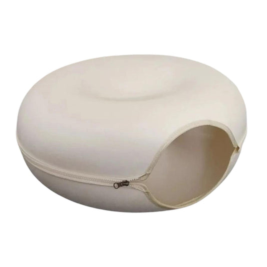 Cream White Donut Cat Bed for 2 Pets Tunnel Kitten House Basket Interactive Natural Felt Cave Nest