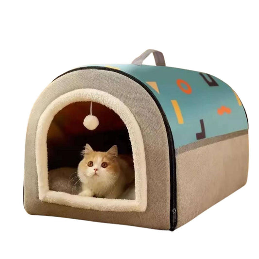 Blue Gray Breathable Warm Plush Pet Bed House Washable Soft Cat Kitten Cushion Kennel for Small Medium Pet Supplies