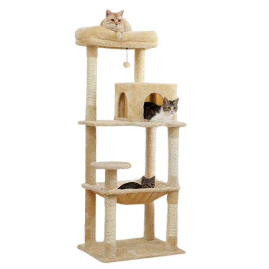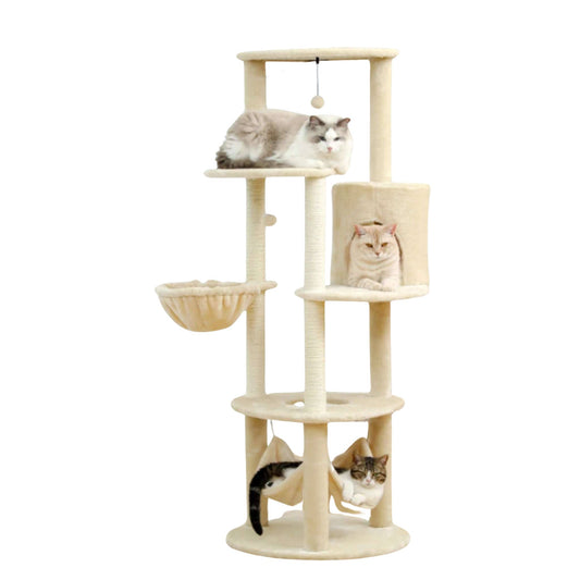 59.8" Beige Cat Scratcher Tower Home Furniture Cat Tree Pets Hammock Sisal Cat Scratching Post Climbing Frame Toy Spacious Perch