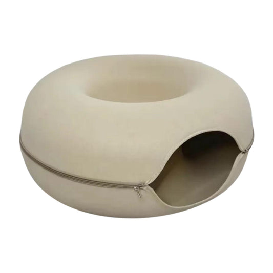 Cream White Donut Cat Bed for 2 Pets Tunnel Kitten House Basket Interactive Natural Felt Cave Nest