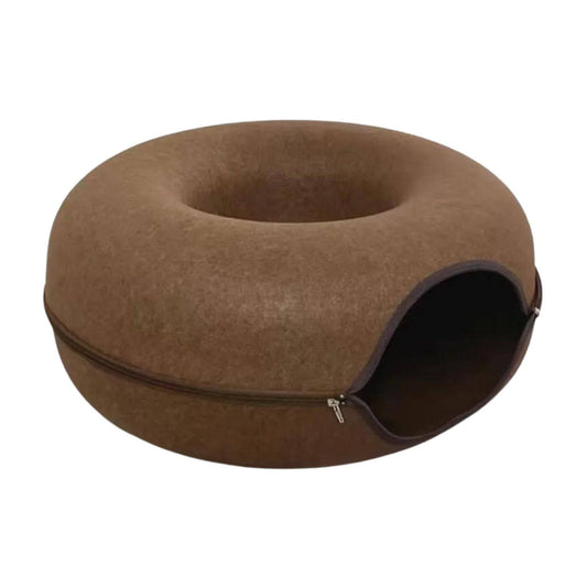 Coffee Donut Cat Bed for 2 Pets Tunnel Kitten House Basket Interactive Natural Felt Cave Nest