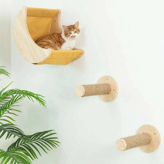 Moon Cat Shelf Wall Mounted with Two Steps Climbing Activity Indoor Cats Modern Wall Furniture
