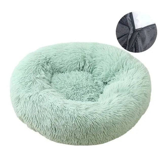 Green Detachable Dog & Cat Bed With Zipper Round Mat Thicken Plush