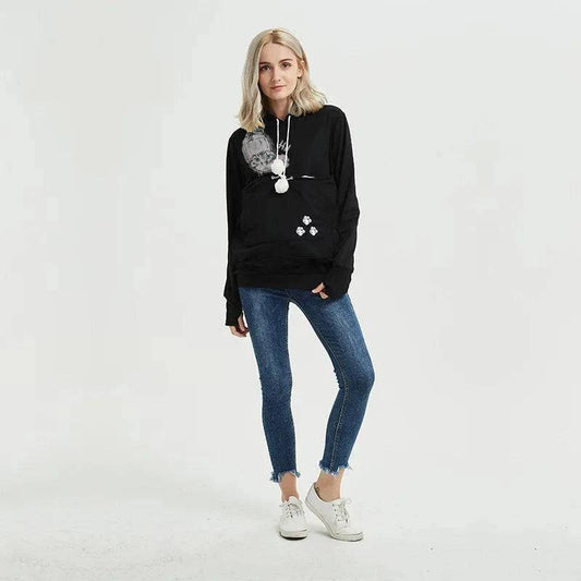 Black High Quality Sweatshirt Cat Dog Lovers Hoodies Kangaroo Pet Paw Ears Cuddle Pouch Pullovers