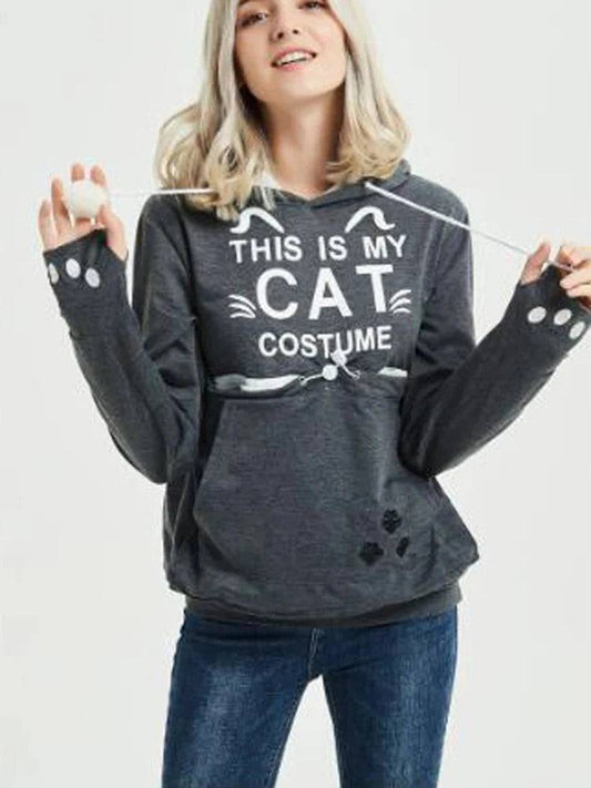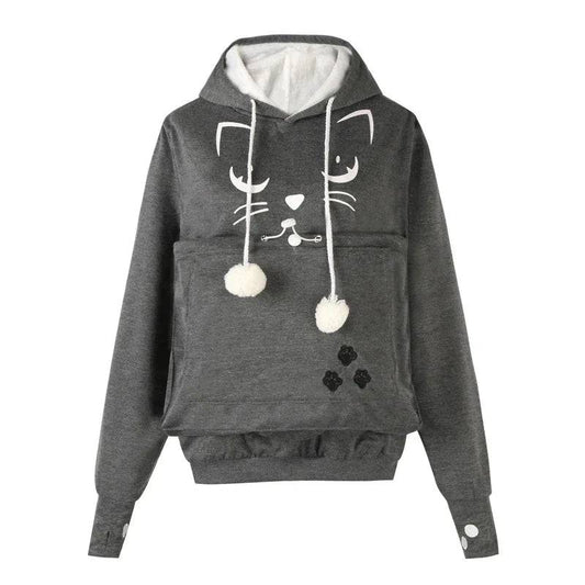Dark Gray High Quality Sweatshirt Cat Dog Lovers Hoodies Kangaroo Pet Paw Ears Cuddle Pouch Pullovers