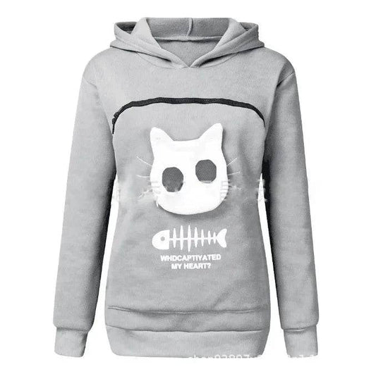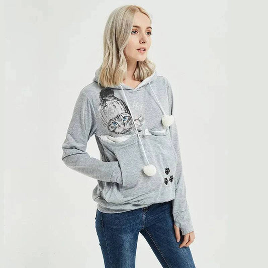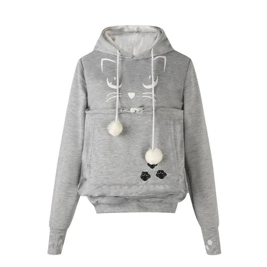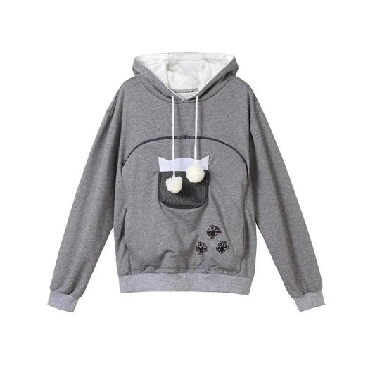 Gray High Quality Sweatshirt Cat Dog Lovers Hoodies Kangaroo Pet Paw Ears Cuddle Pouch Pullovers
