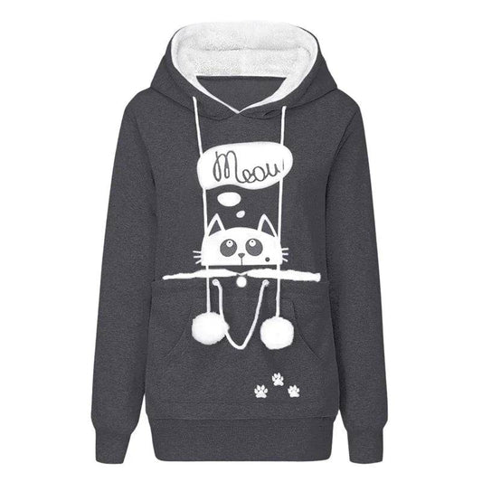 Gray Meow Print High Quality Sweatshirt Cat Dog Lovers Hoodies Kangaroo Pet Paw Ears Cuddle Pouch Pullovers