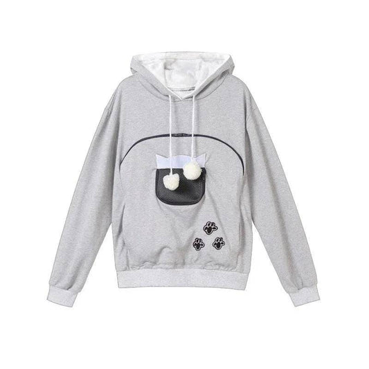 Light Gray High Quality Sweatshirt Cat Dog Lovers Hoodies Kangaroo Pet Paw Ears Cuddle Pouch Pullovers