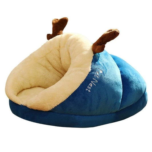 Blue Pet Kennel Cats House Semi Enclosed Winter Warm Thick Slippers Pads Soft And Washable Portable Nest