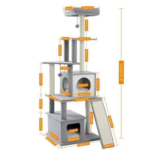 65.6" Cat Tree House Condo Cat’s Activity Center with Soft Perch Fully Wrapped Scratching Sisal Post