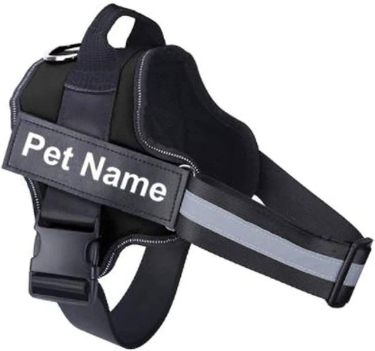Black Dog Harness No Pull Reflective Breathable Pet Harness With Name For Dogs Custom Patch Adjustable Outdoor Walking Dog Supplies