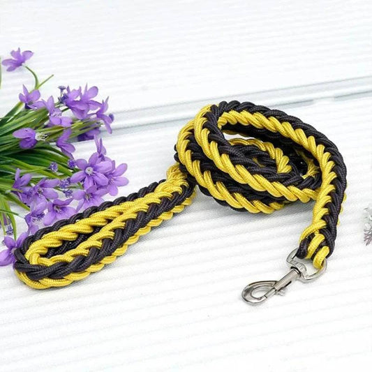 Yellow Super Strong Coarse Nylon Dog Leash Double Row Adjustable Collar For Medium Large Dogs