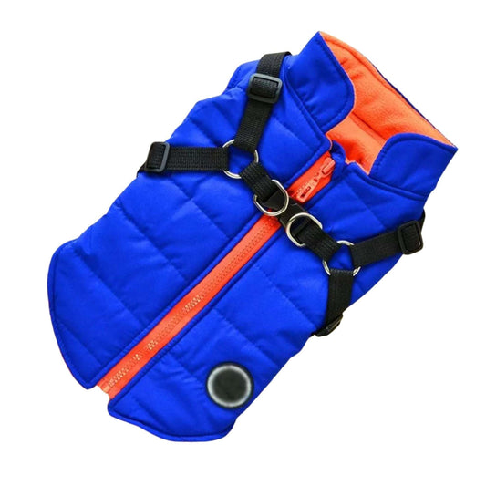 Blue Waterproof Dog Vest Jacket with Harness Winter Coats