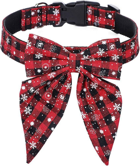 Red Black Christmas Snowflake Pet Collar Holiday Bow Design