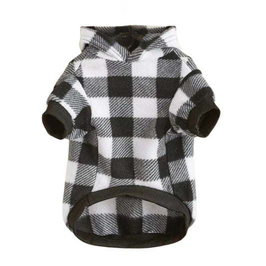 White Black Plaid Winter Hoodie Stylish and Warm Pet Jacket