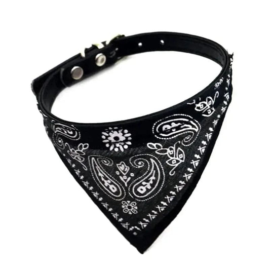 Black Adjustable cat and dog bandana collar PU pet neck scarf with printed triangle scarf