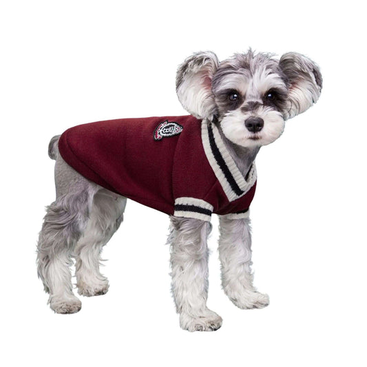 Red Preppy Style V-Neck Dog Sweater Warm Winter Pet Cloth