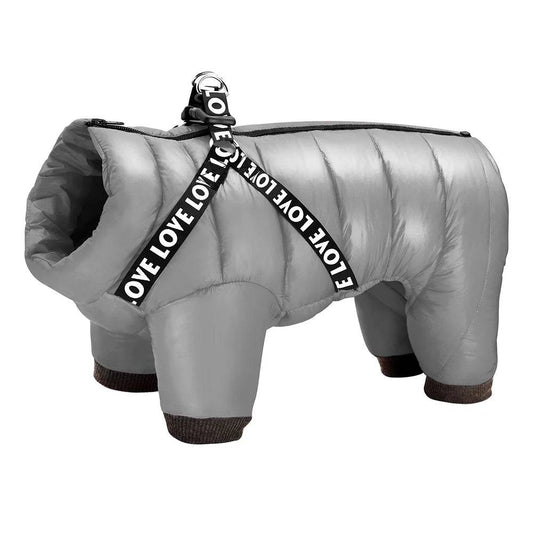 Gray Winter Pet Dog Clothes Thicker Polyester Cotton Coat Jumpsuit Four-Legged Down Puppy Jackets