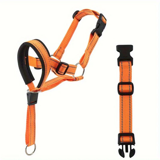 Orange Adjustable Nylon Anti-Bark Dog Muzzle & Head Halter