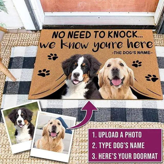 No Need To Knock We Know You're Here Custom Doormat Personalized gifts Text Name Pet Dog Photo indoor/outdoor Rug Door mat