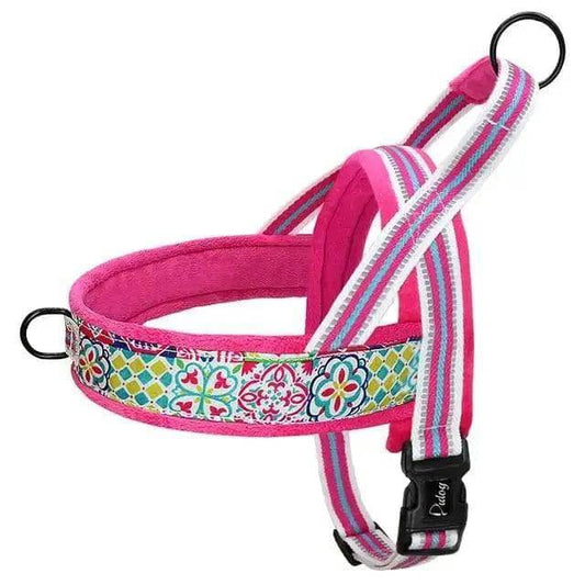 Pink With Multi Design Warm Harness Vest Winter Soft Padded Pet Training Adjustable For Small Large Dog Puppy