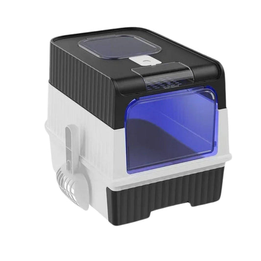 Black Fully Enclosed - Semi-sealed Pet Cat Litter Box Anti-Splash Deodorant Cat Toilet Two-Way Litter Tray with Shovel Litter Tray