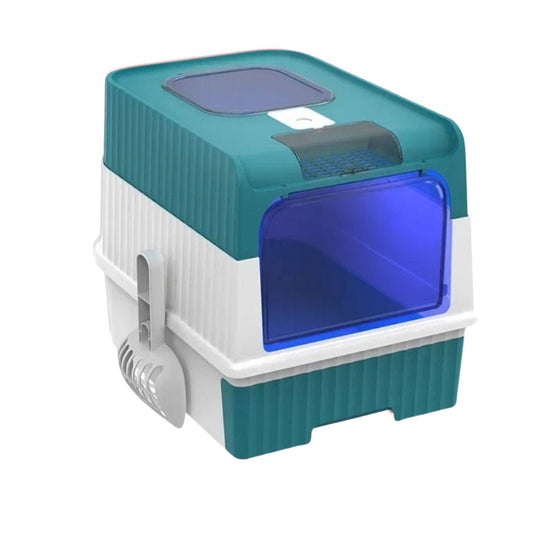 Blue Fully Enclosed - Semi-sealed Pet Cat Litter Box Anti-Splash Deodorant Cat Toilet Two-Way Litter Tray with Shovel Litter Tray