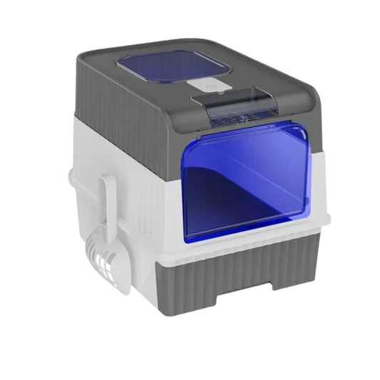 Grey Fully Enclosed - Semi-sealed Pet Cat Litter Box Anti-Splash Deodorant Cat Toilet Two-Way Litter Tray with Shovel Litter Tray