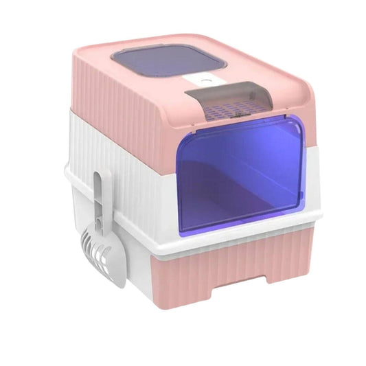 Pink Fully Enclosed - Semi-sealed Pet Cat Litter Box Anti-Splash Deodorant Cat Toilet Two-Way Litter Tray with Shovel Litter Tray
