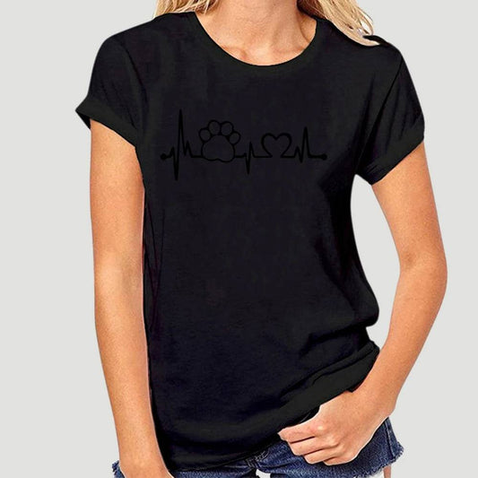 Black Heartbeat Lifeline Dog Women T-Shirt Casual Funny Foot For Lady Girl Hipster