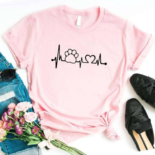 Pink Heartbeat Lifeline Dog Women T-Shirt Casual Funny Foot For Lady Girl Hipster