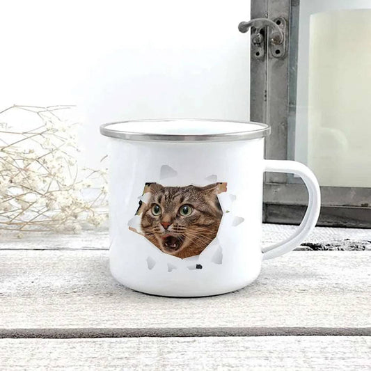 Cute 3D Printed Cat Enamel Coffee Tea Mug with Handle #01
