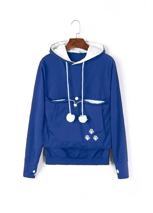 Dark Blue Paw Print High Quality Sweatshirt Cat Dog Lovers Hoodies Kangaroo Pet Paw Ears Cuddle Pouch Pullovers
