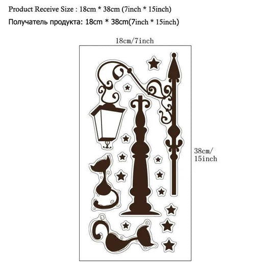 Cats Under The Street Light Wall Stickers Romantic Background For Home Decoration Mural Wallpaper Art Decals Love Cat Sticker