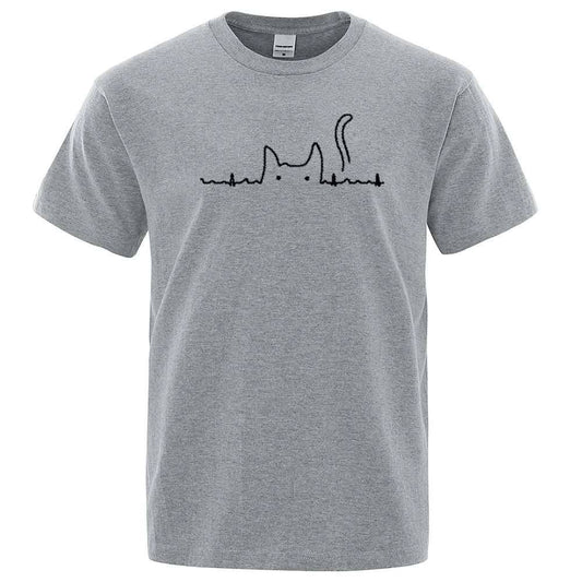 Gray Casual Men's T-Shirts Cat Cute Printed Summer Cotton O-Neck Short Sleeve Top Tee T-shirts