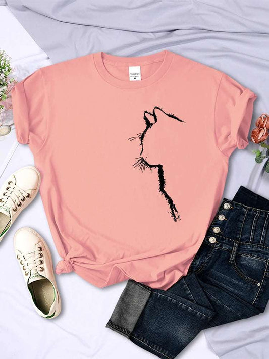 Pink Cat Funny Printed Women T-Shirt Fashion Casual Short Sleeve O-Neck Tee Clothing Summer Tops