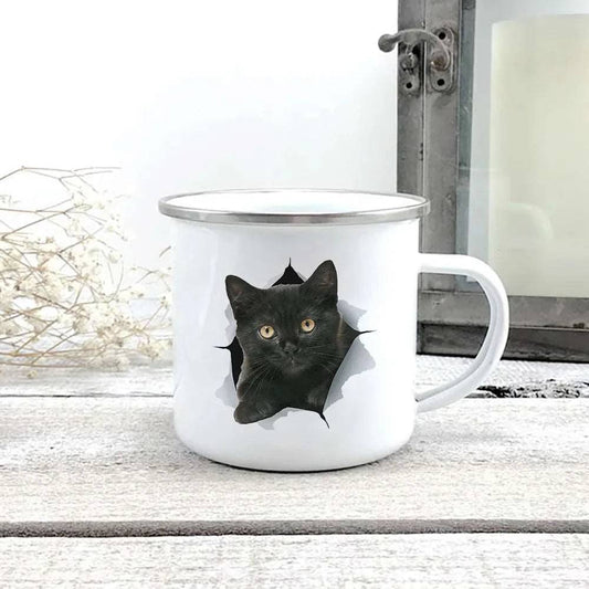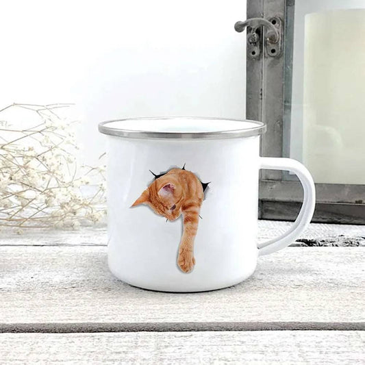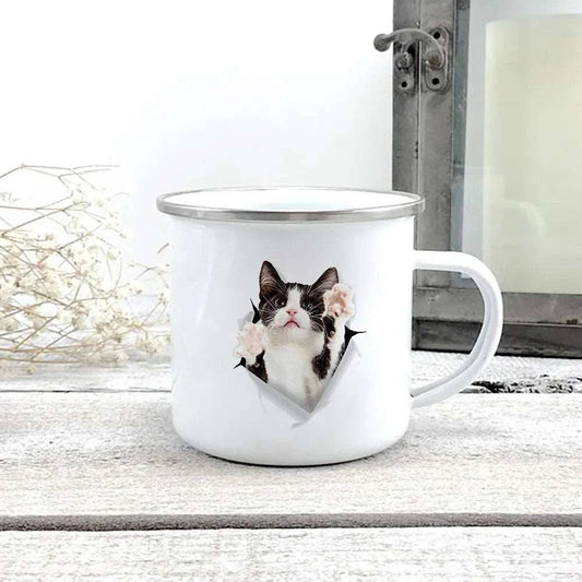 Cute 3D Printed Cat Enamel Coffee Tea Mug with Handle #02