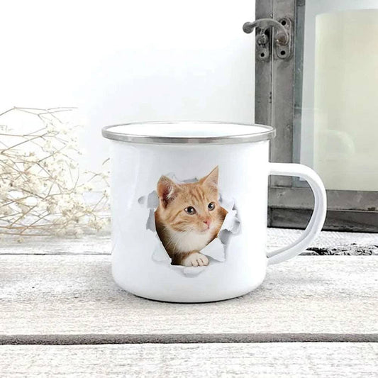 Cute 3D Printed Cat Enamel Coffee Tea Mug with Handle #04