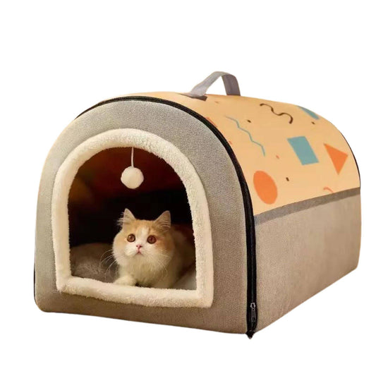 Yellow Gray Breathable Warm Plush Pet Bed House Washable Soft Cat Kitten Cushion Kennel for Small Medium Pet Supplies