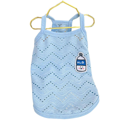 Blue Dog Summer Clothes Cute Embroidery Striped Top Vest Breathable Puppy Sleeveless Shirt