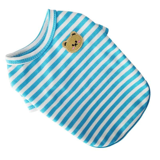Blue Summer Clothes for Small Dogs Fashion T-Shirt Bear Print Puppy Thin Strip Vest Pet Clothes