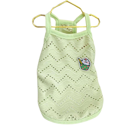 Green Dog Summer Clothes Cute Embroidery Striped Top Vest Breathable Puppy Sleeveless Shirt
