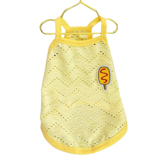 Yellow Dog Summer Clothes Cute Embroidery Striped Top Vest Breathable Puppy Sleeveless Shirt